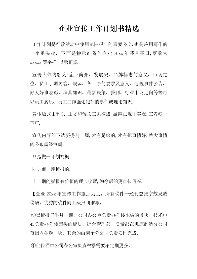 企业宣传工作计划书精选