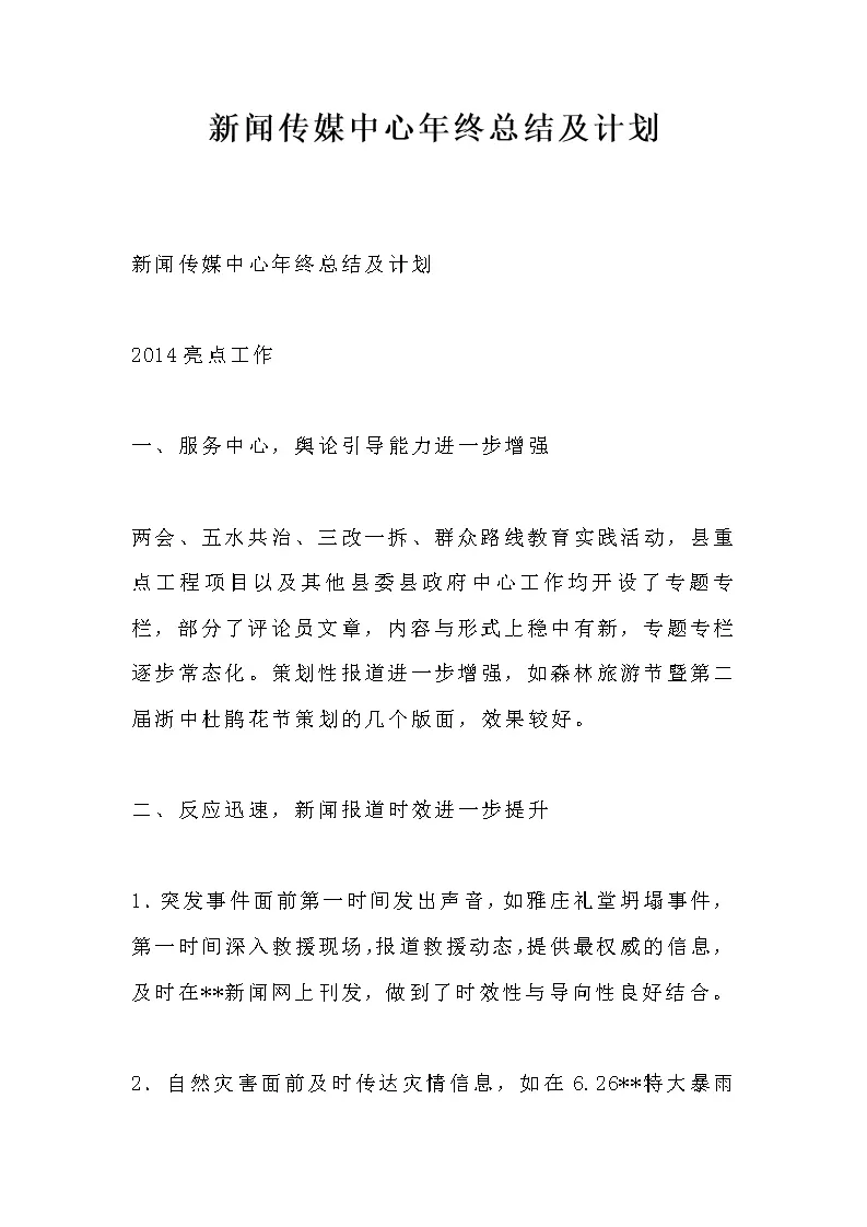 新闻传媒中心年终总结及计划