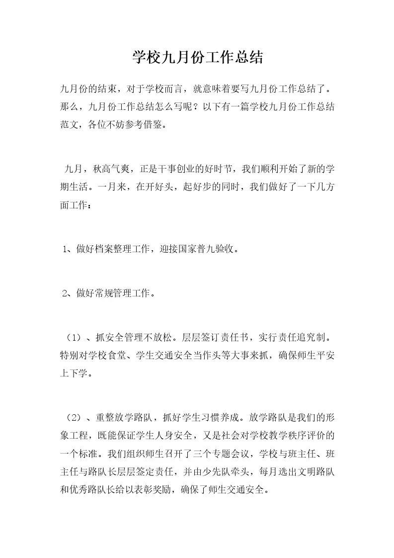 学校九月份工作总结