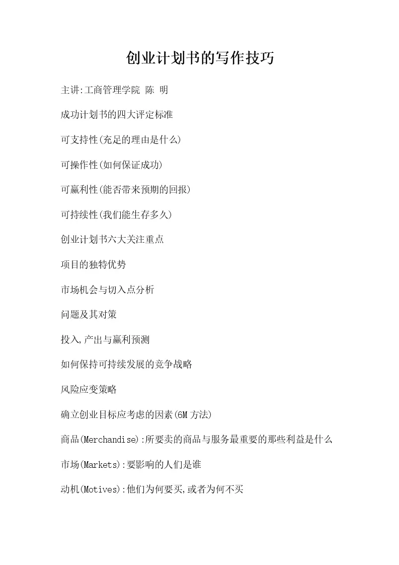 创业计划书的写作技巧