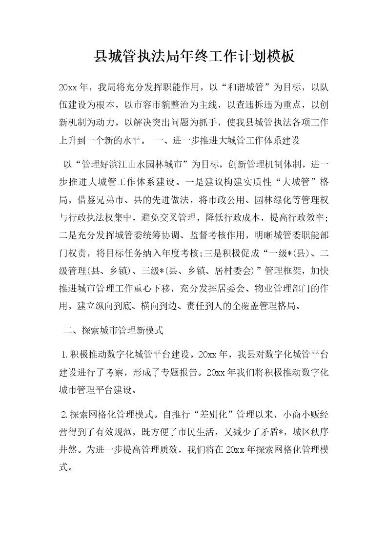 县城管执法局年终工作计划模板