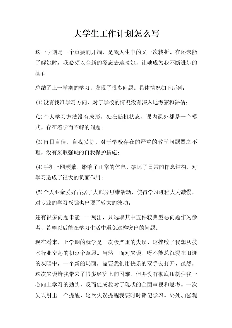 大学生工作计划怎么写