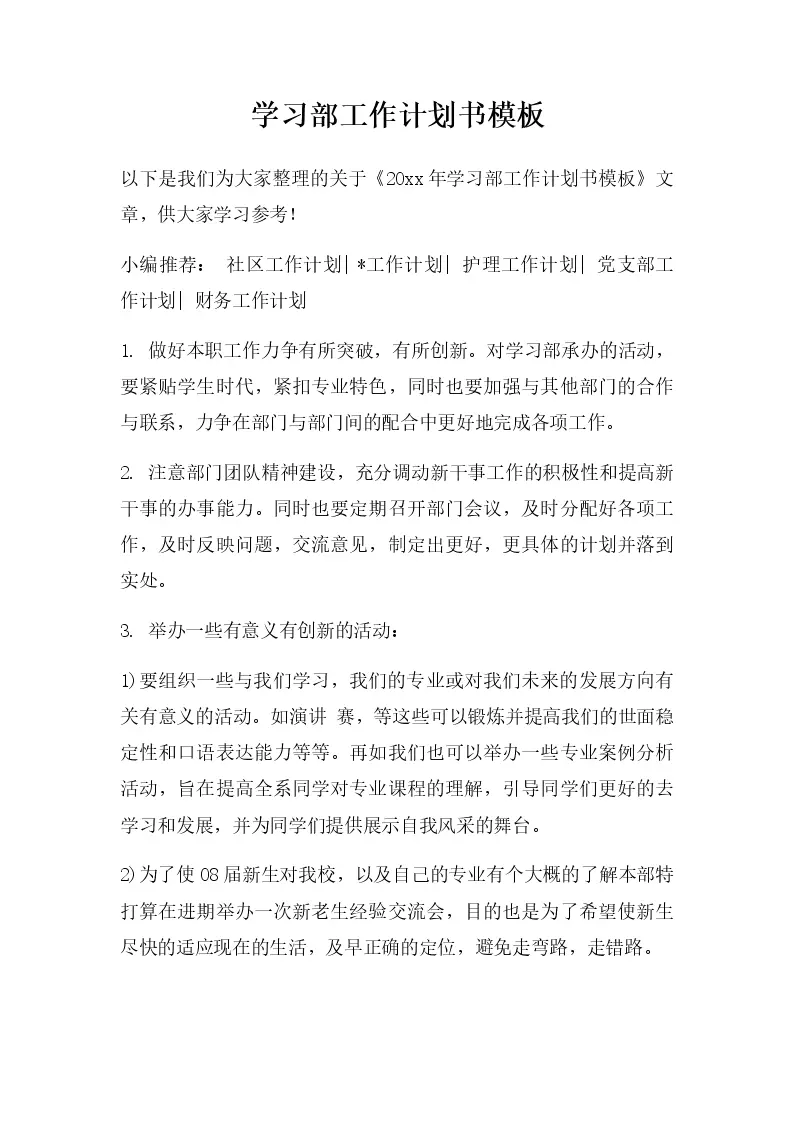 学习部工作计划书模板