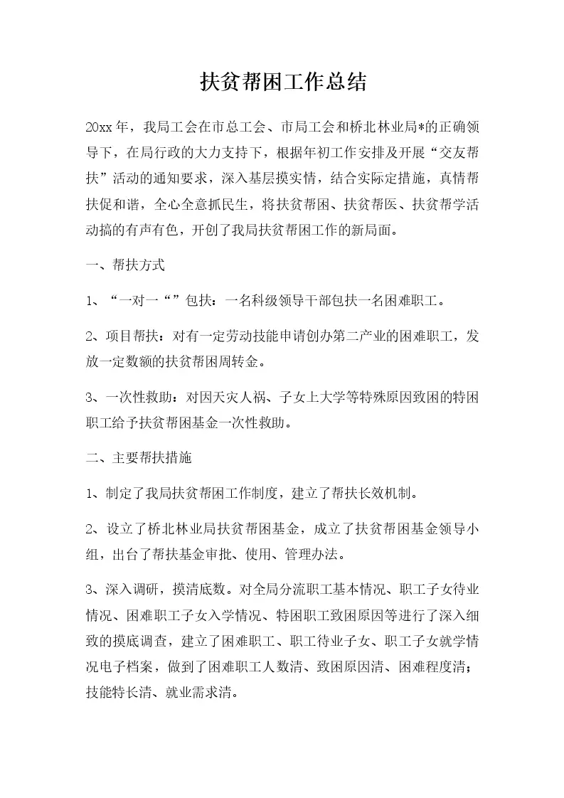 扶贫帮困工作总结