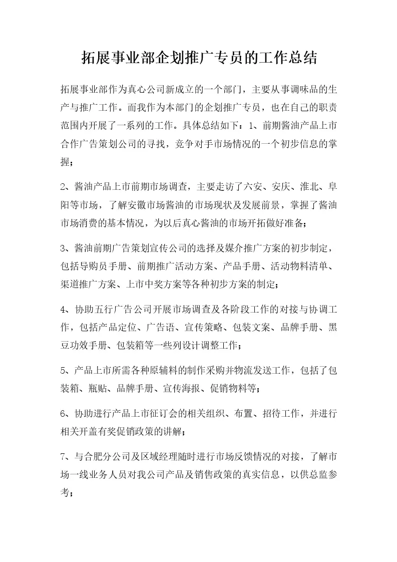 拓展事业部企划推广专员的工作总结
