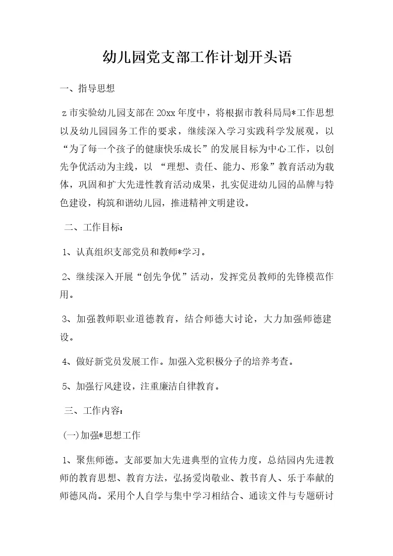 幼儿园党支部工作计划开头语