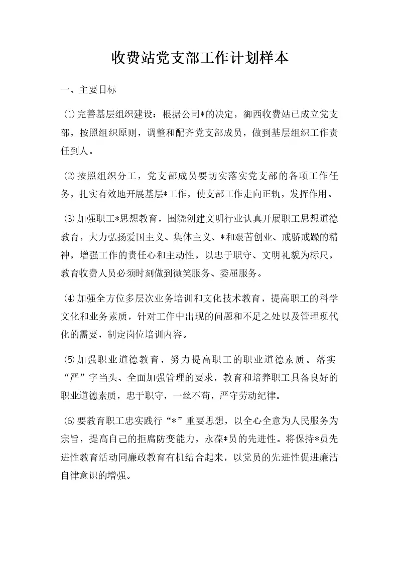 收费站党支部工作计划样本