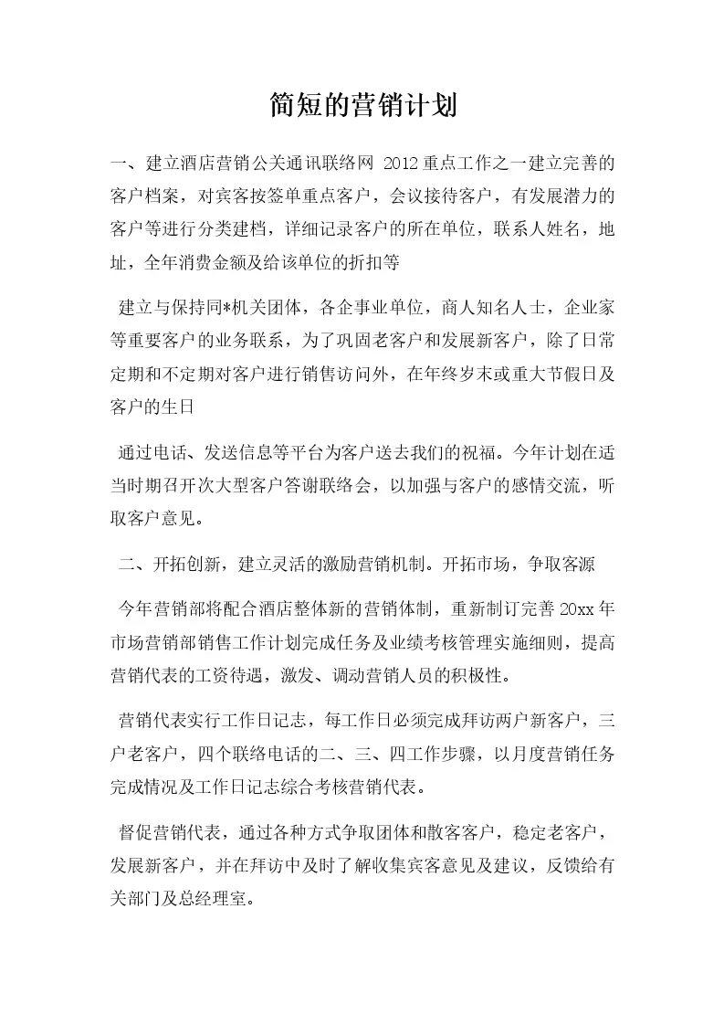 简短的营销计划