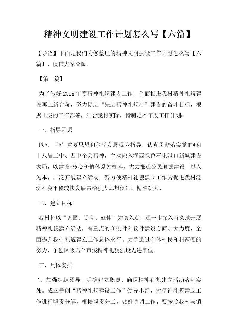 精神文明建设工作计划怎么写【六篇】