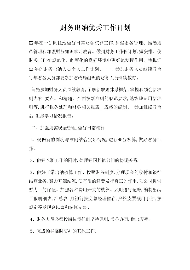 财务出纳优秀工作计划