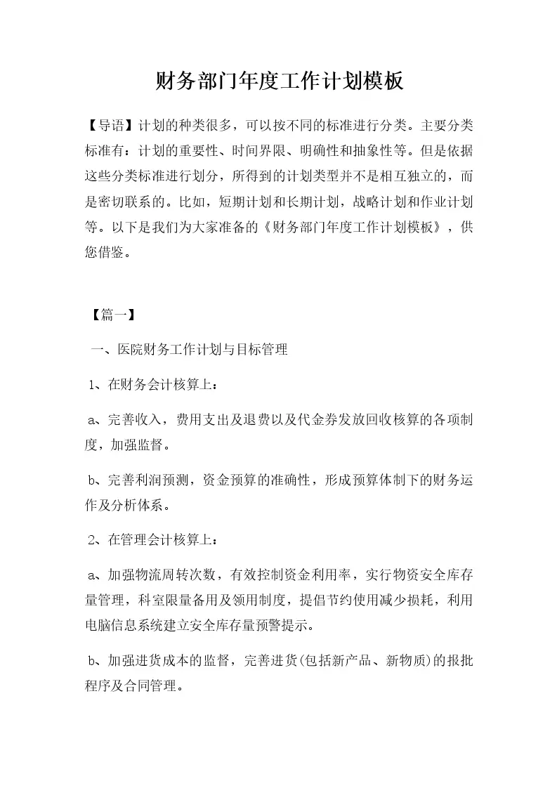 财务部门年度工作计划模板