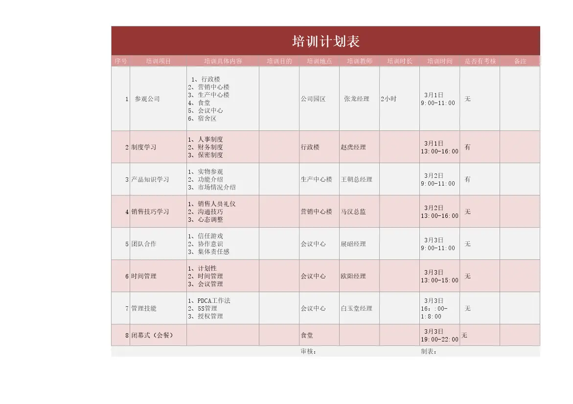 培训计划表格模板