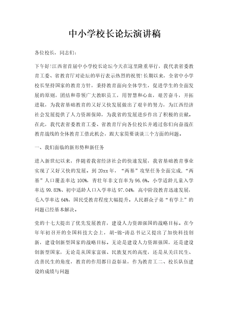 中小学校长论坛演讲稿