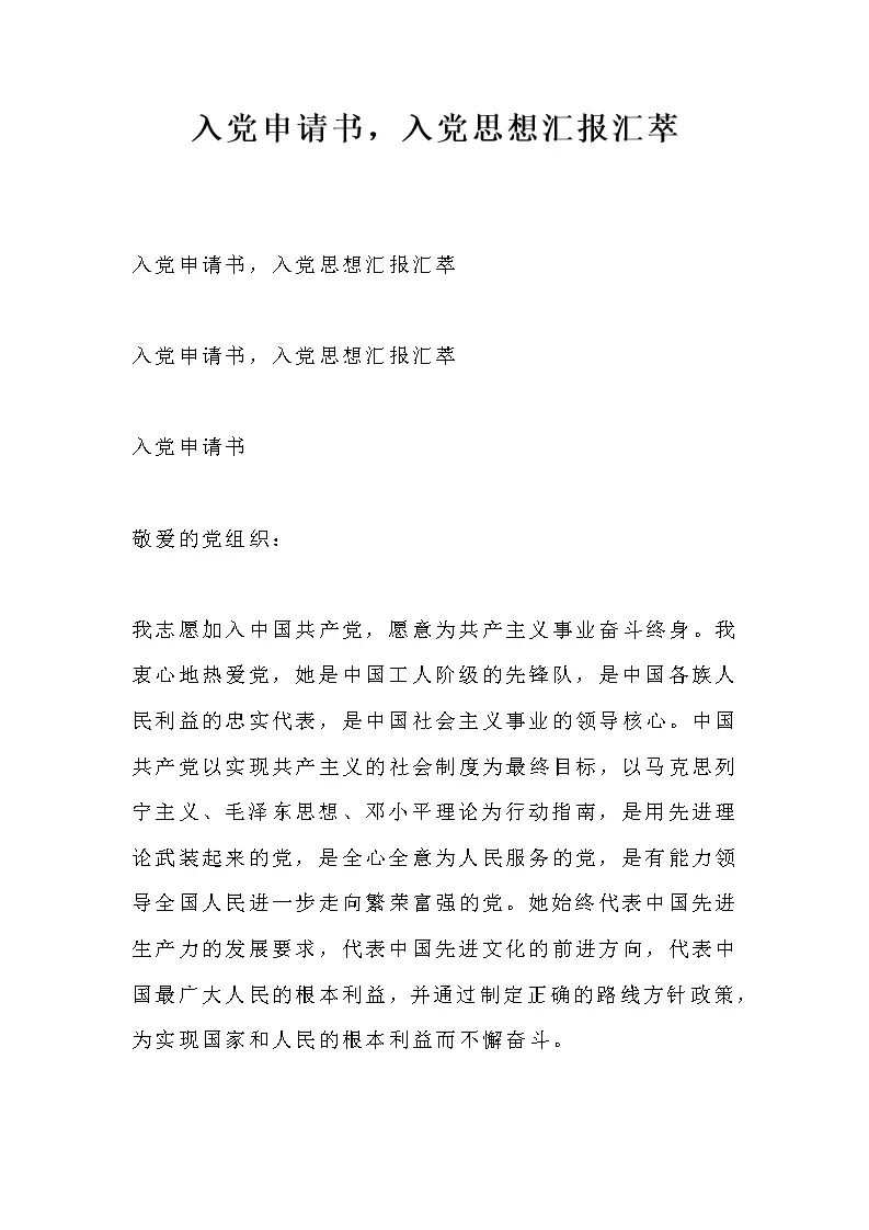 入党申请书,入党思想汇报汇萃