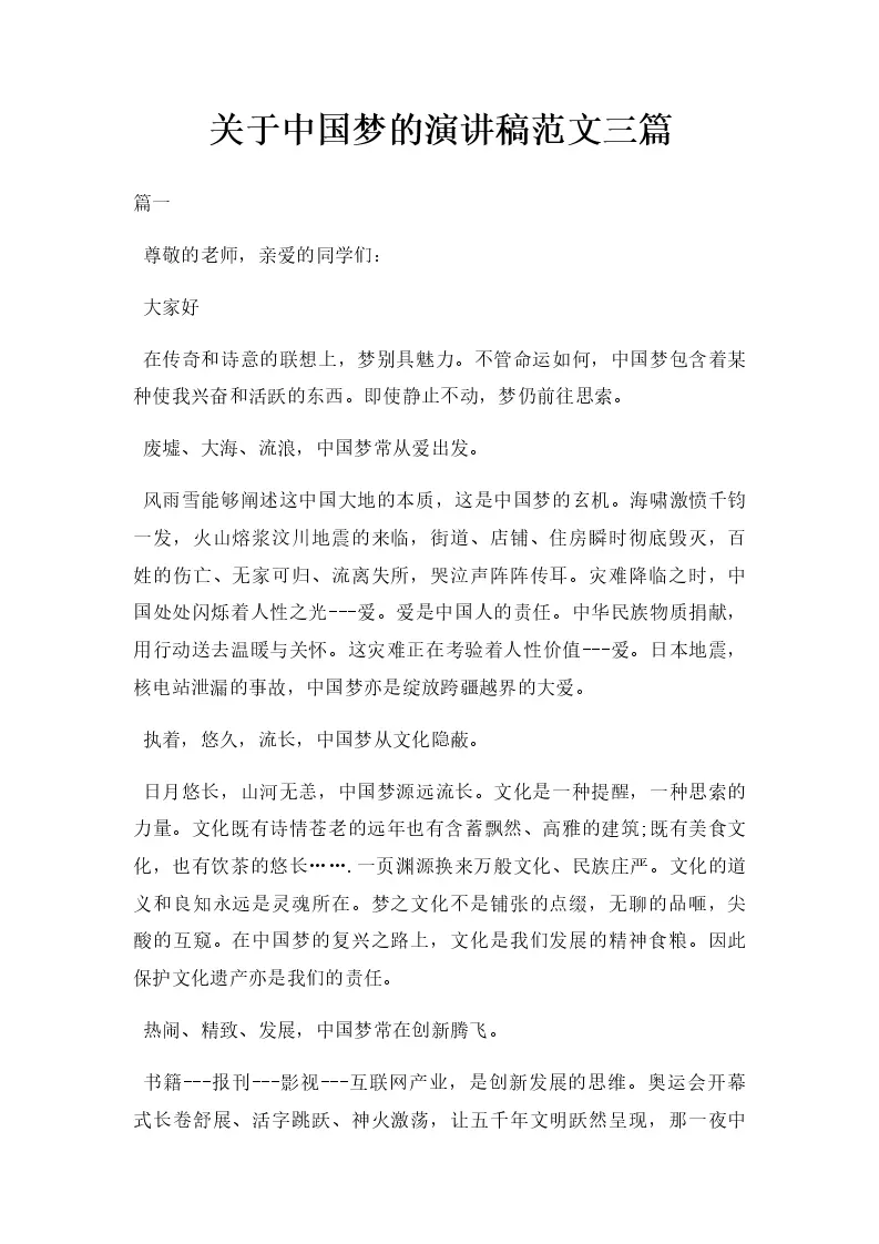 中国梦的演讲稿范文三篇