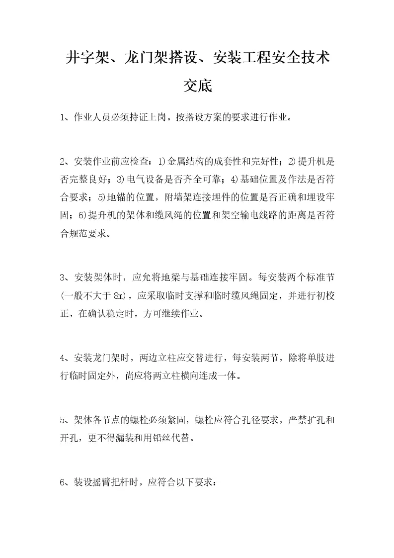 井字架、龙门架搭设、安装工程安全技术交底