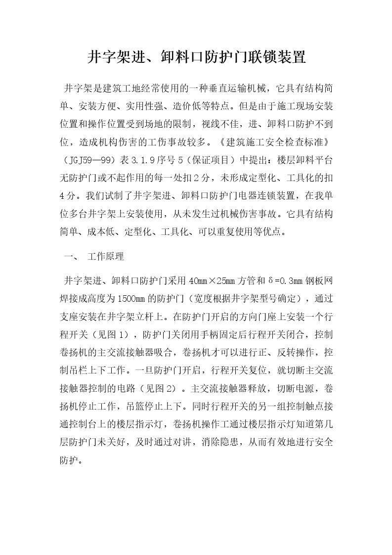 井字架进、卸料口防护门联锁装置