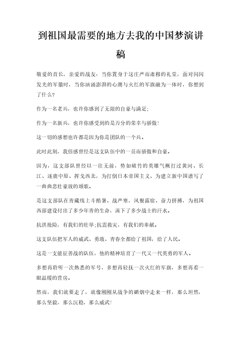 到祖国最需要的地方去我的中国梦演讲稿