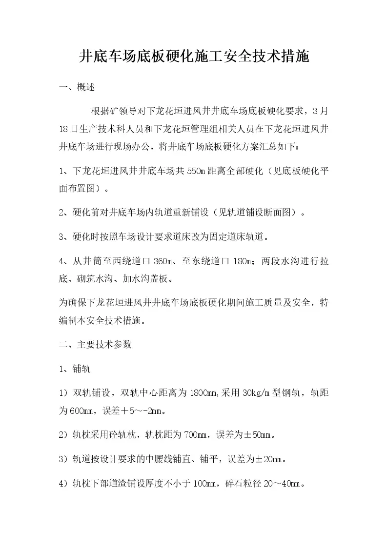 井底车场底板硬化施工安全技术措施