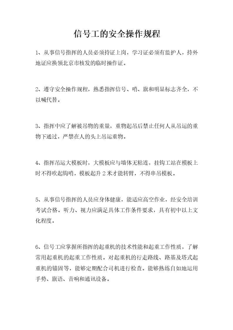 信号工的安全操作规程