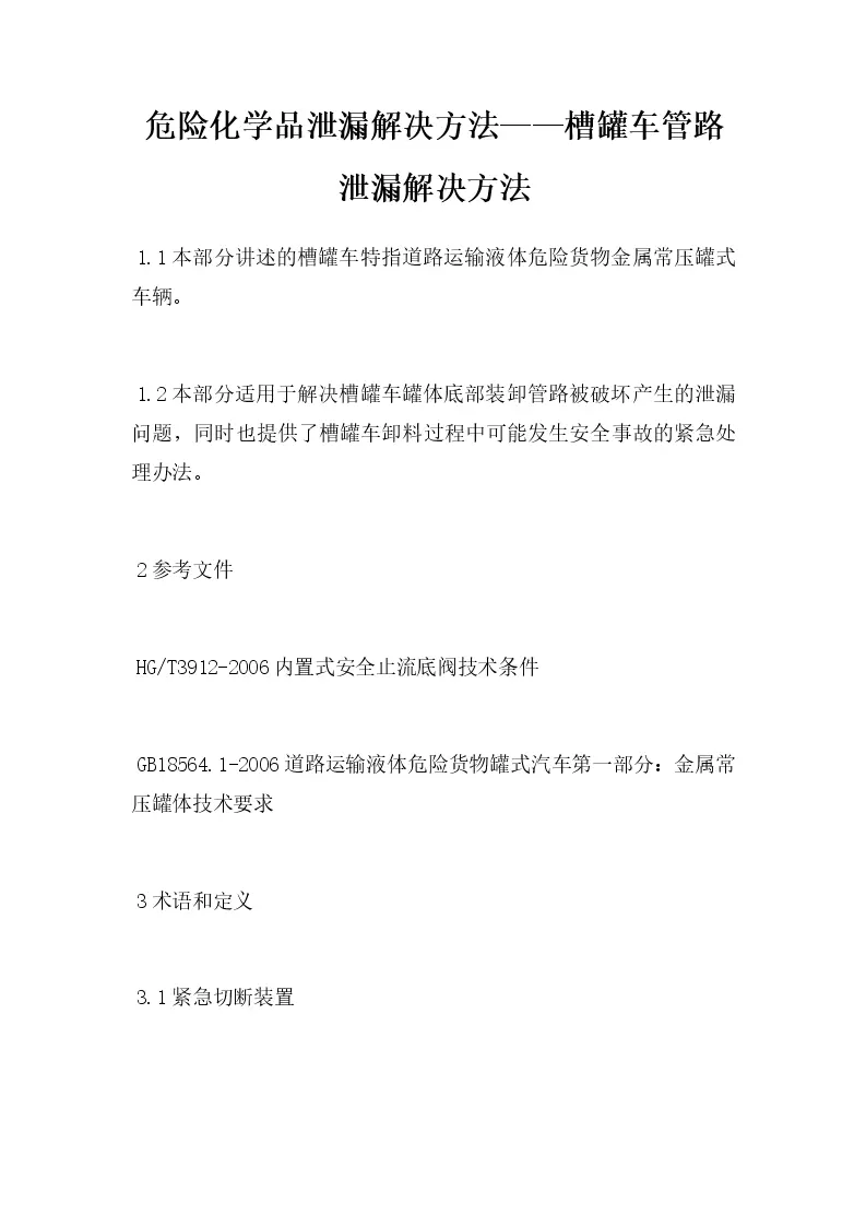 危险化学品泄漏解决方法——槽罐车管路泄漏解决方法