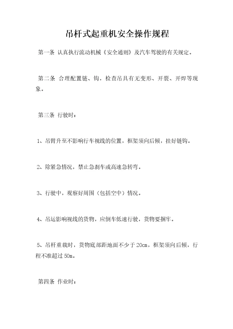吊杆式起重机安全操作规程
