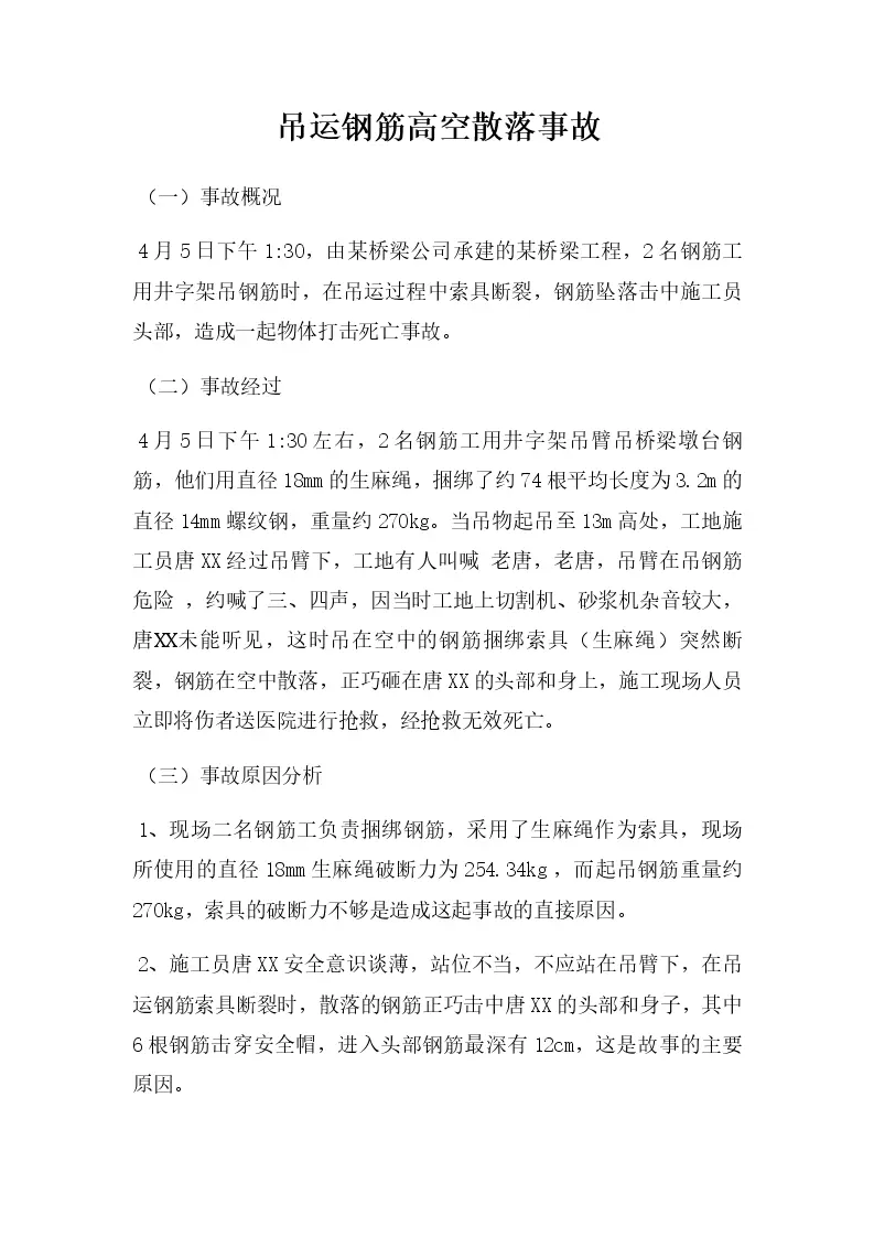 吊运钢筋高空散落事故