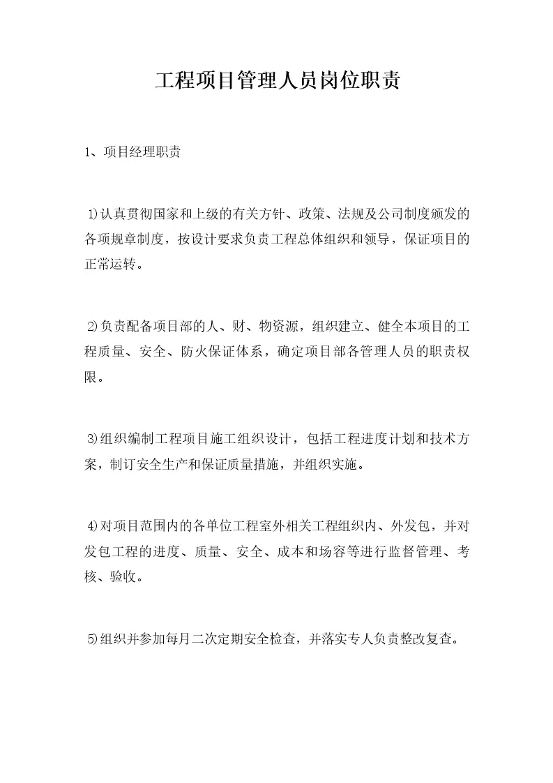 工程项目管理人员岗位职责