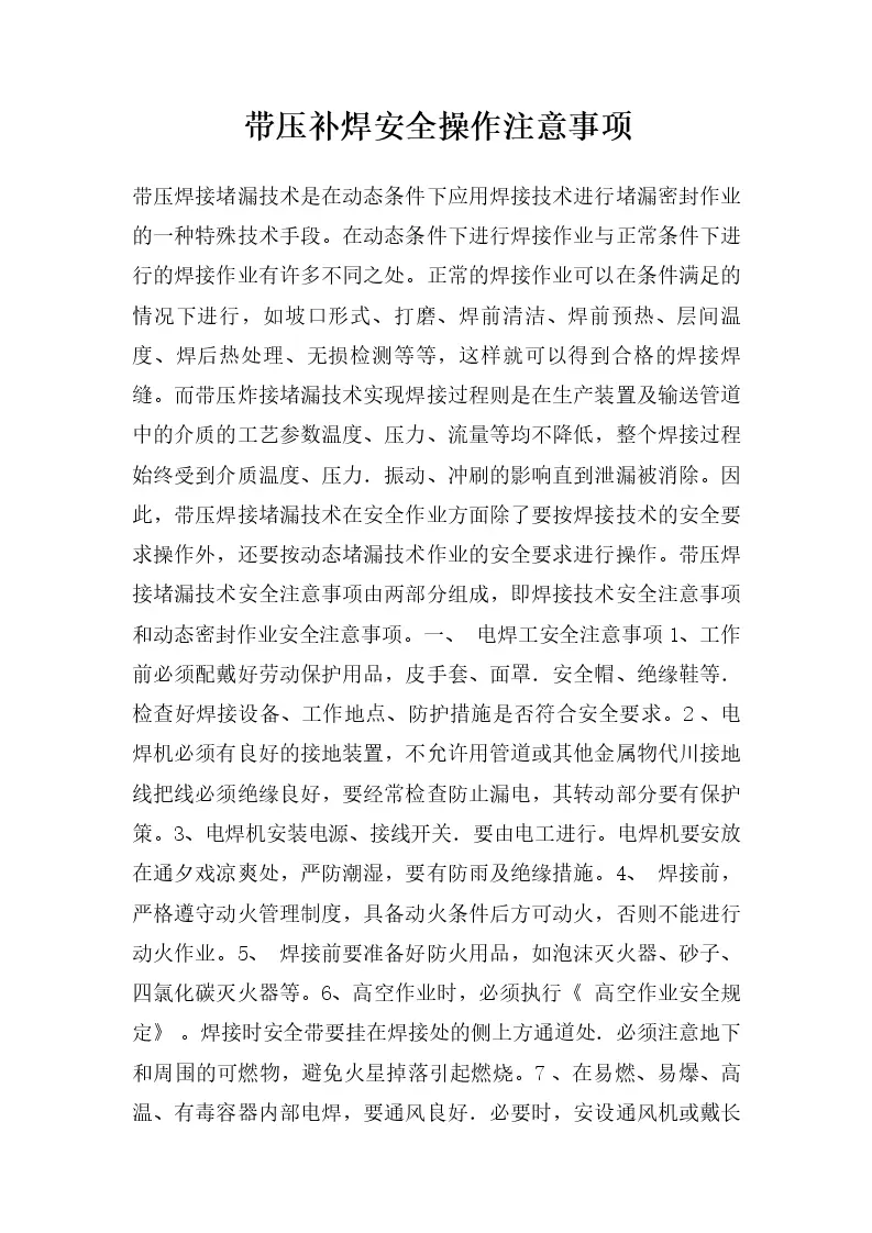带压补焊安全操作注...