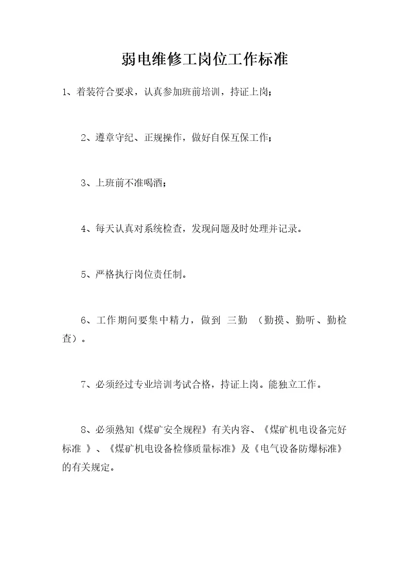 弱电维修工岗位工作标准