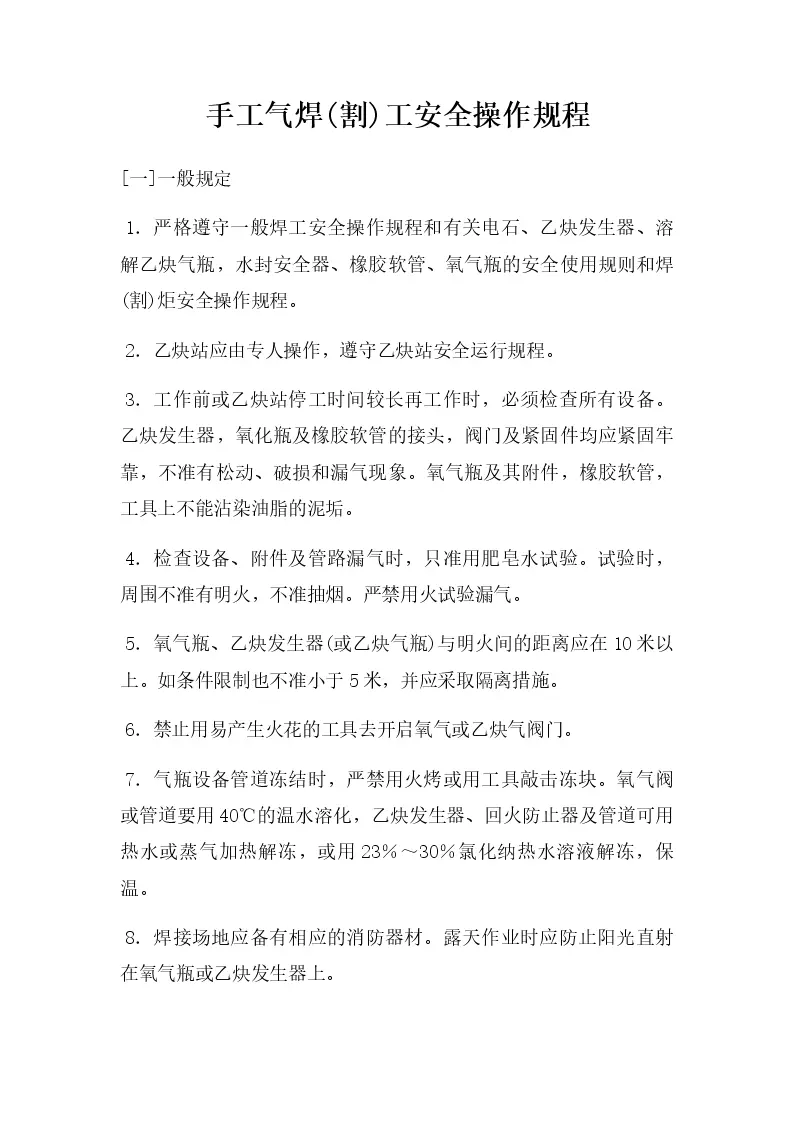 手工气焊(割)工安全操作规程