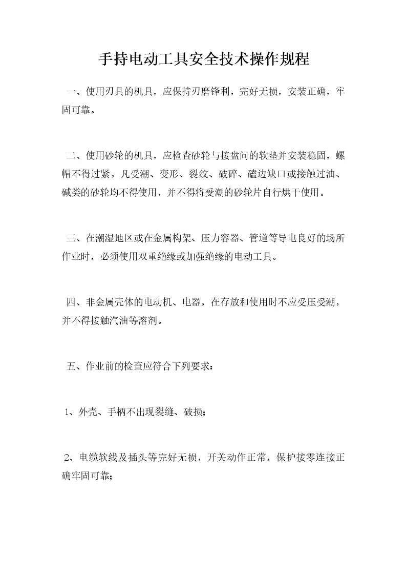 手持电动工具安全技术操作规程