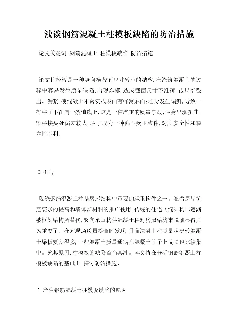 浅谈钢筋混凝土柱模板缺陷的防治措施
