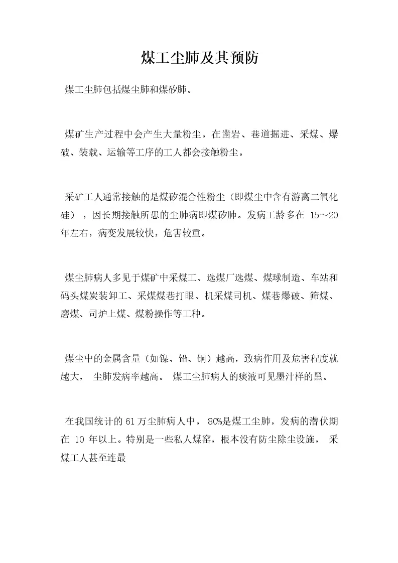 煤工尘肺及其预防