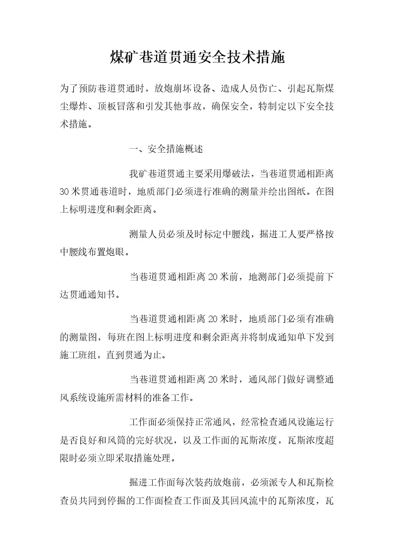 煤矿巷道贯通安全技术措施