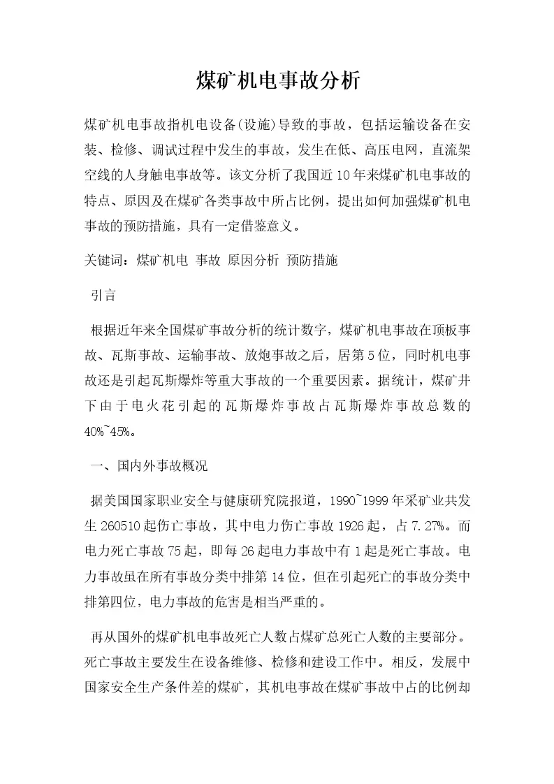 煤矿机电事故分析