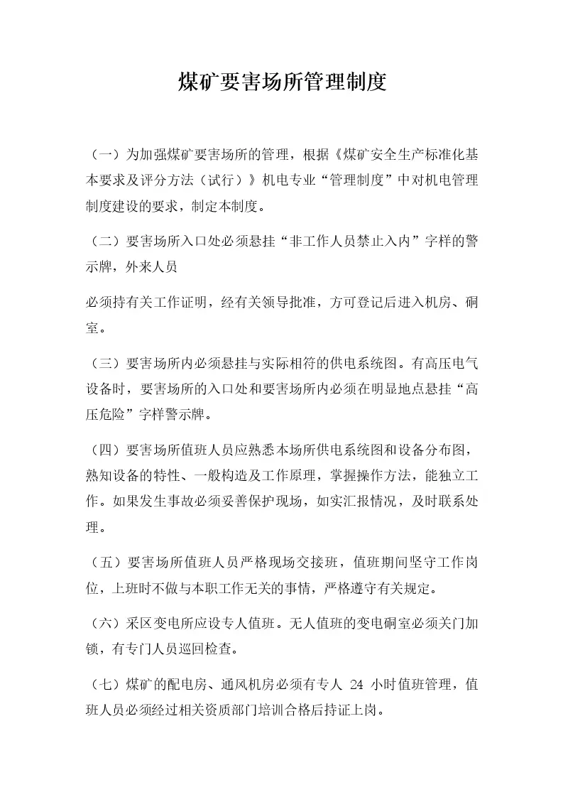 煤矿要害场所管理制度