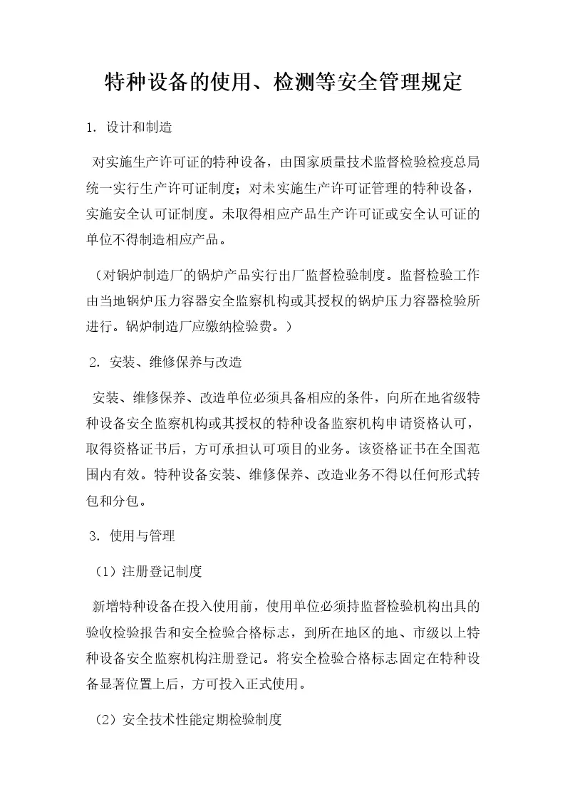 特种设备的使用、检测等安全管理规定