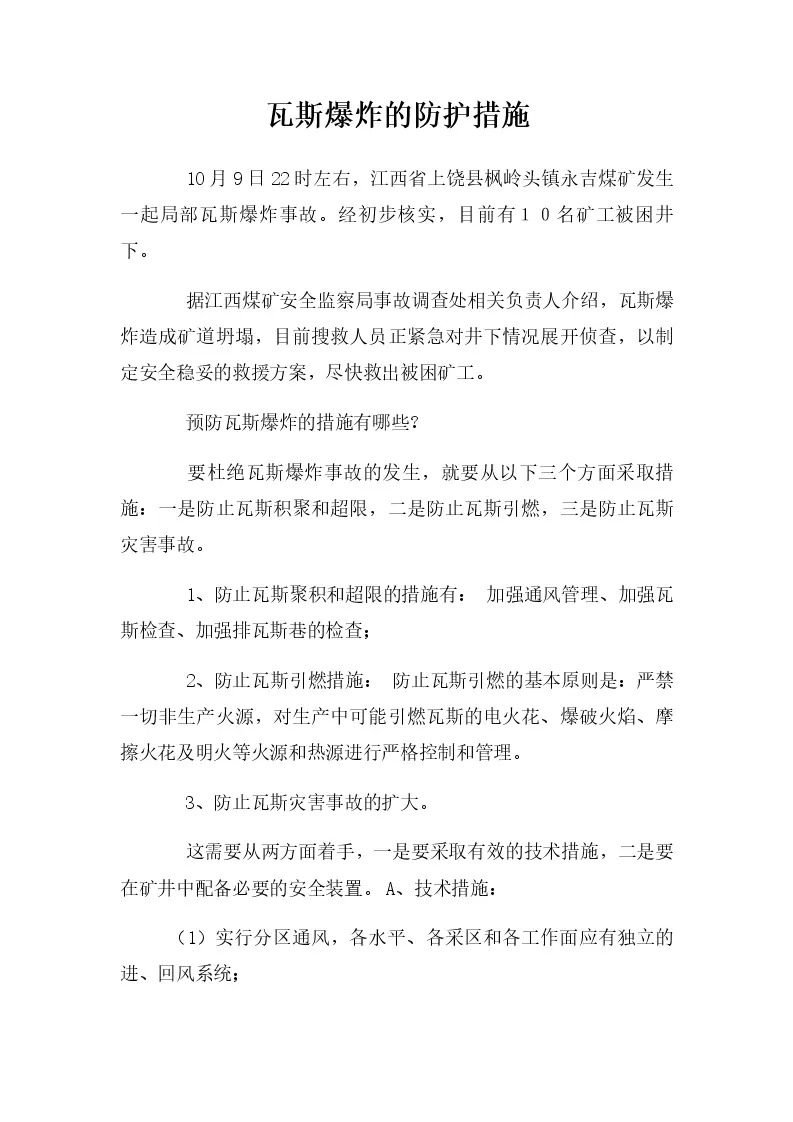 瓦斯爆炸的防护措施