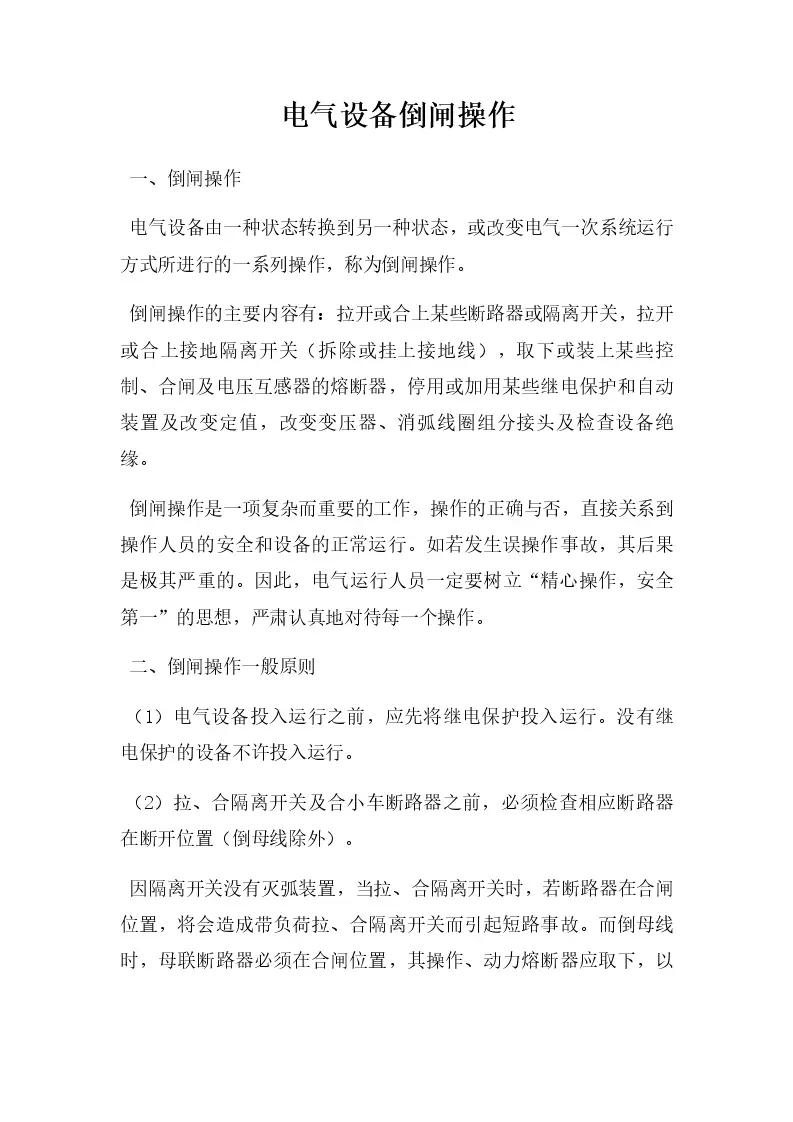 电气设备倒闸操作