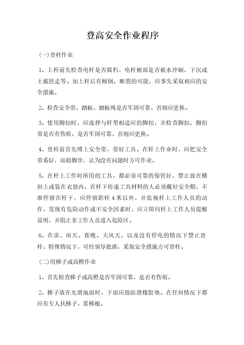 登高安全作业程序