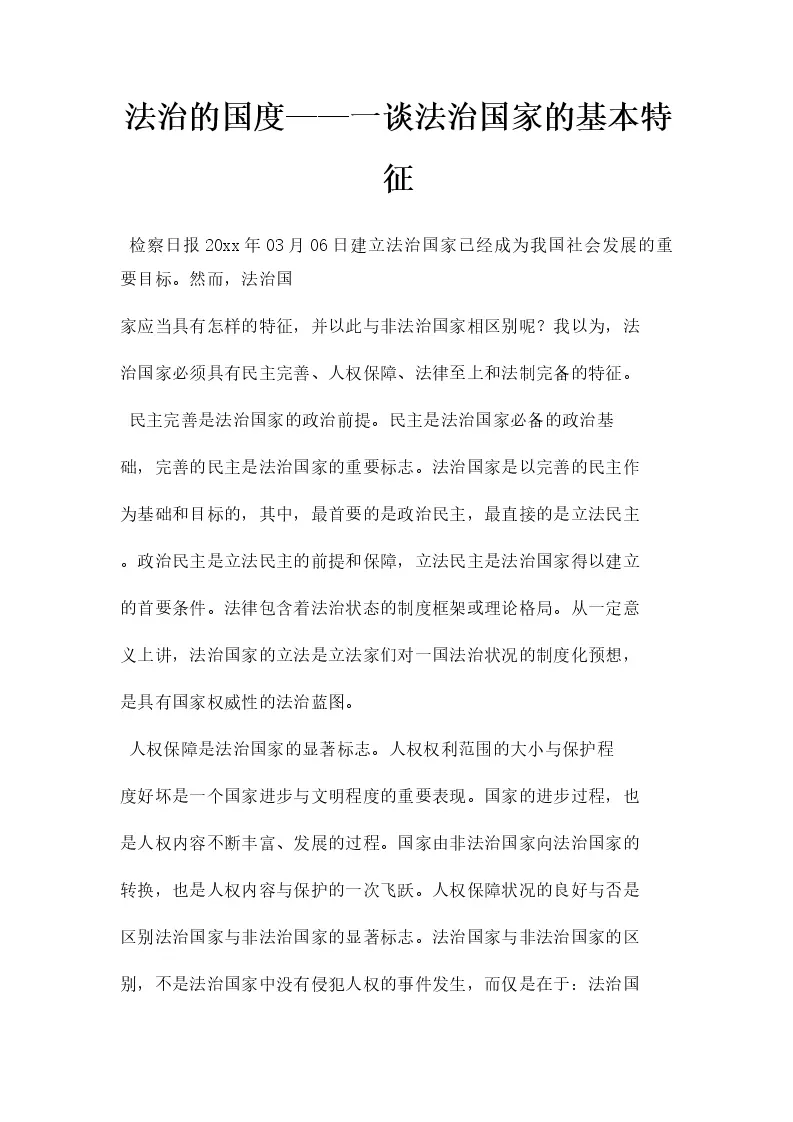 法治的国度——一谈法治国家的基本特征
