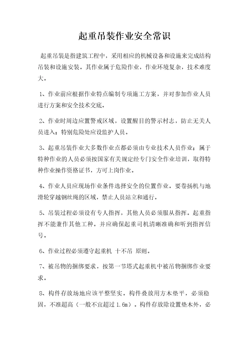 起重吊装作业安全常识