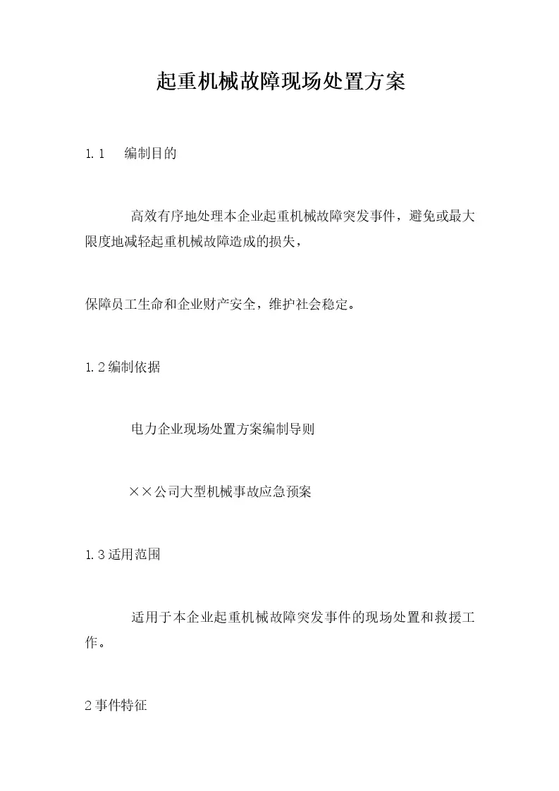 起重机械故障现场处置方案