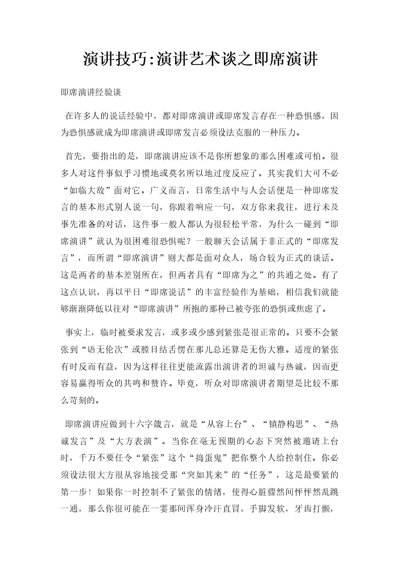 演讲技巧演讲艺术谈之即席演讲