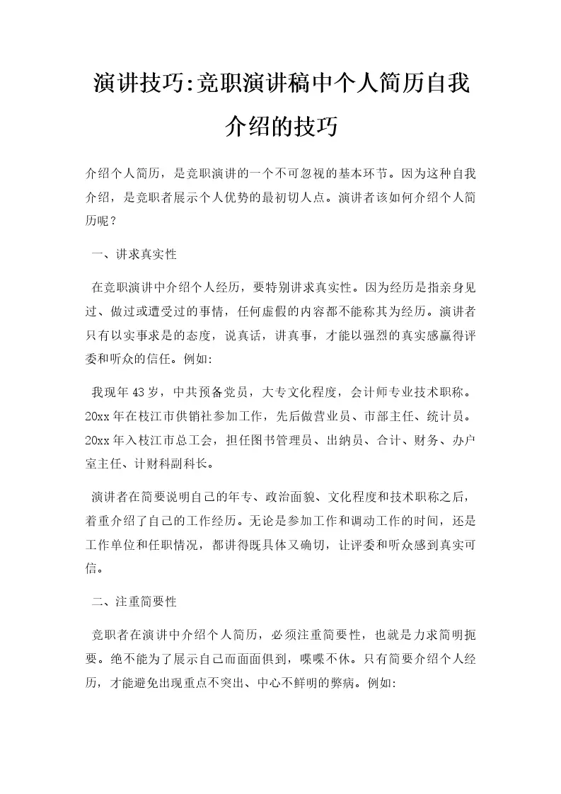 演讲技巧竞职演讲稿中个人简历自我介绍的技巧