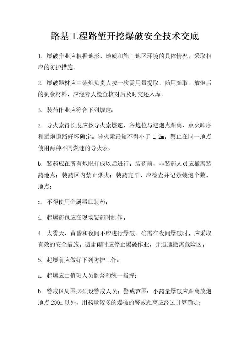路基工程路堑开挖爆破安全技术交底