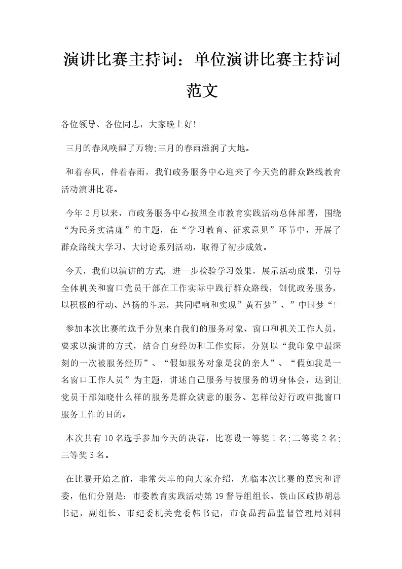 演讲比赛主持词:单...