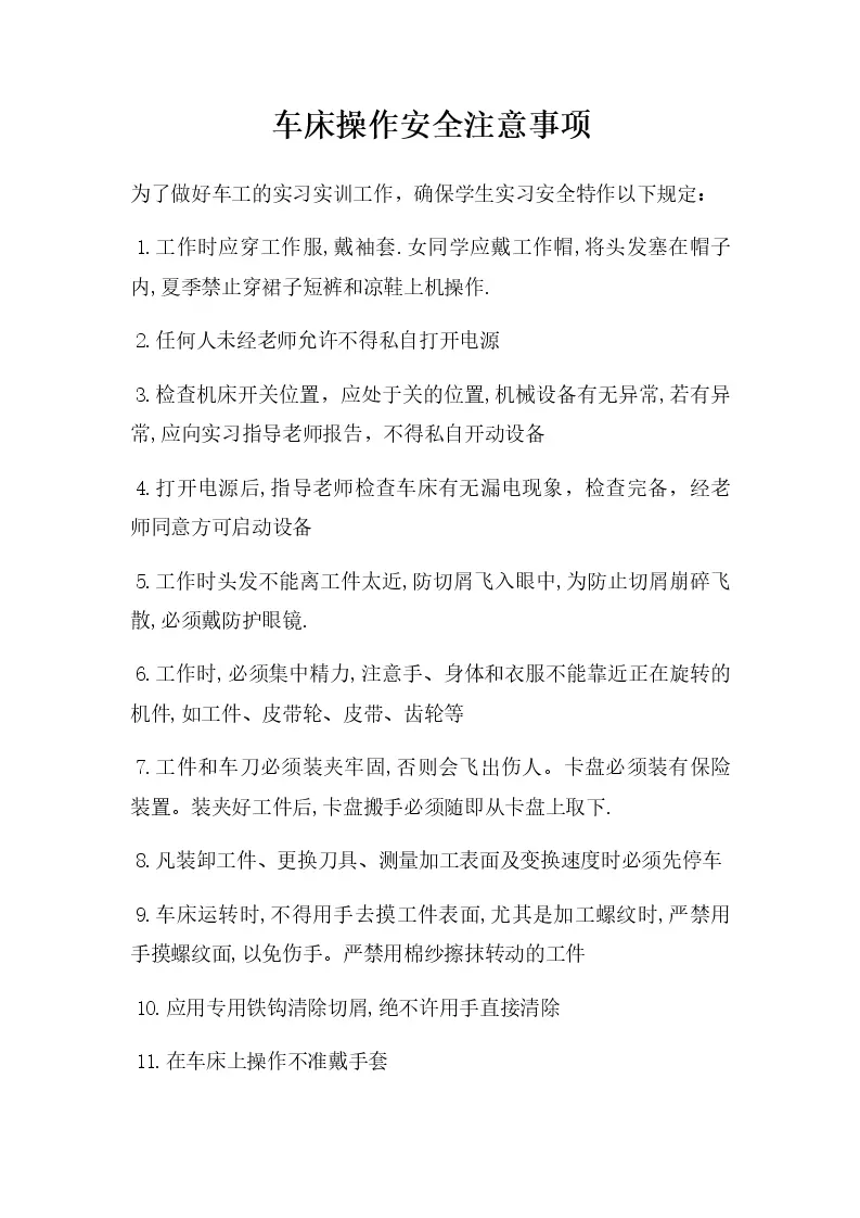 车床操作安全注意事项