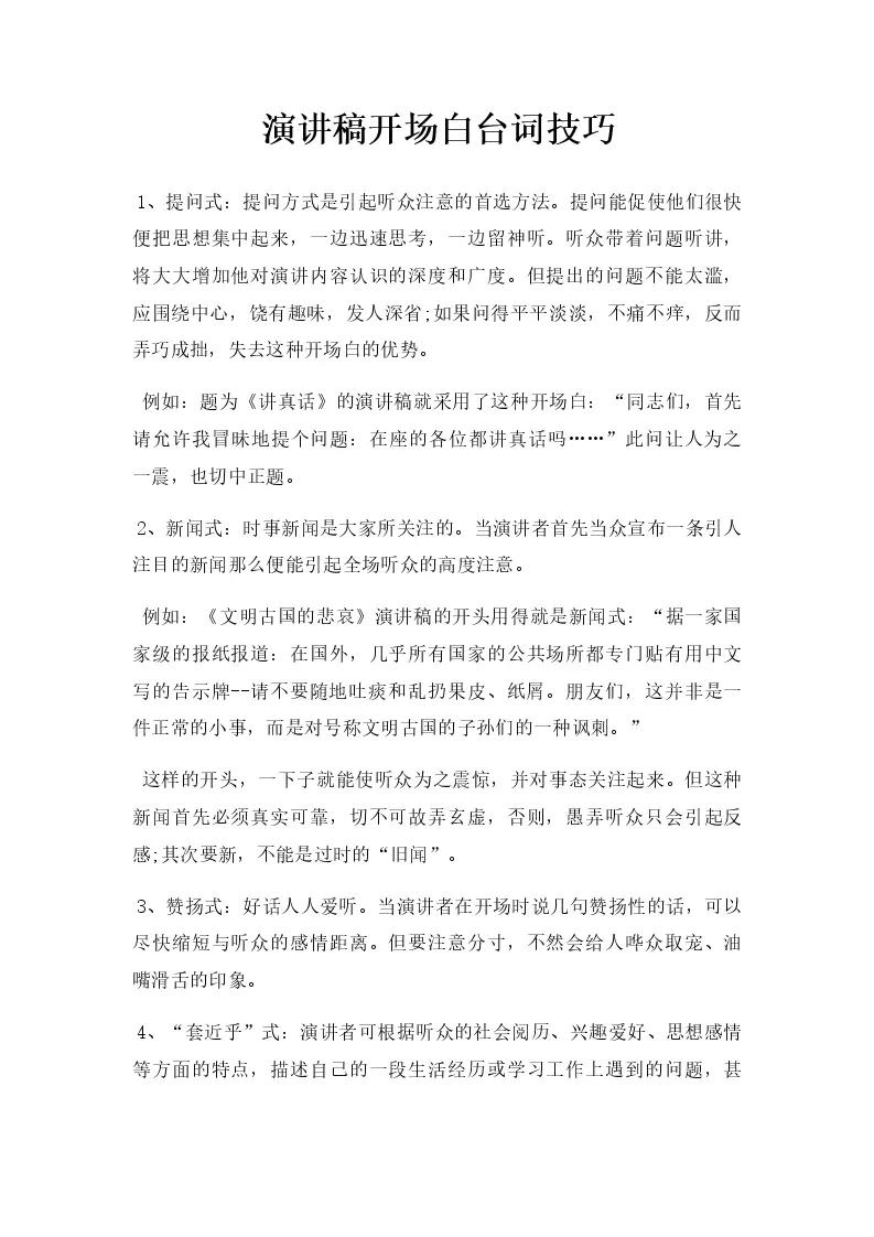 演讲稿开场白台词技巧